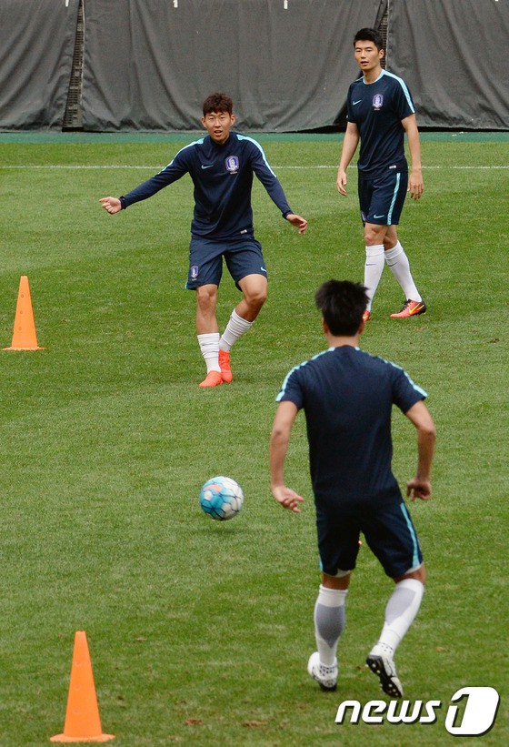 韓國男足訓練中,9月1日將戰中國(圖片來源:news1)