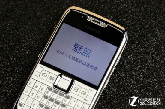 魅藍新品邀請函是一臺諾基亞E71,開機后界面顯示發布會信息