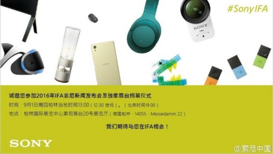 索尼將于9月1日召開新品發布會(圖片來自新浪微博@索尼中國)