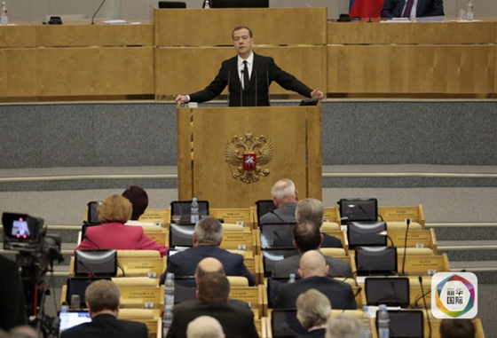 4月19日,在俄羅斯首都莫斯科,俄羅斯總理梅德韋杰夫在國家杜馬(議會下院)作政府工作報告。