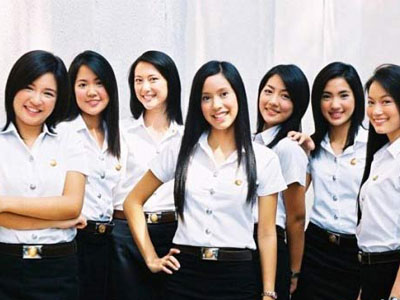 泰國對學生著裝要求很嚴格,從小學到大學都有相對應的校服(沒錯!你沒看錯,是到“大學”)。2010年,泰國教育部推出新的校服樣式,女學生改穿白色緊身短袖襯衫,其緊身程度可以將身體曲線表露無遺,原先的黑裙則改成低腰迷你裙,腰線剛剛及胯,裙邊則短到大腿中部,為了走路方便,迷你裙的斜側面還要開一道口子,十分性感。而男學生則是白襯衫配超低腰牛仔褲。