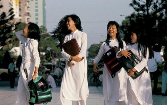 到過越南的人們都會注意到穿著一襲白色越南傳統服裝奧黛的高中女生們,這也成為了越南的國家名片。越南規定高中學校應該把白色的傳統服裝奧黛作為校服。貼身的校服顯露出女生的姣好身材,白色增添一抹雅致,令人心旌搖曳。