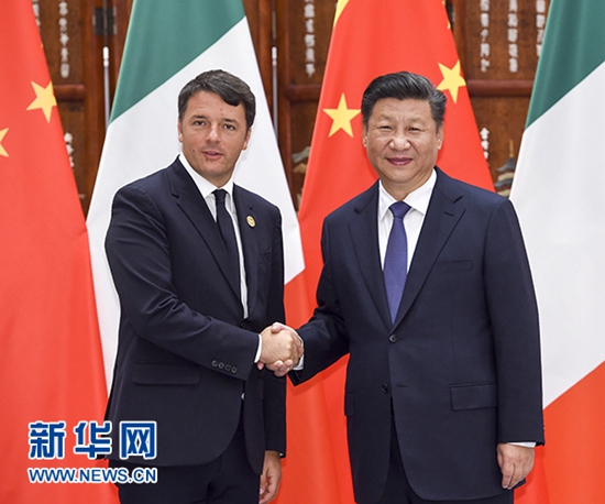 國家主席習近平3日在杭州會見意大利總理倫齊。