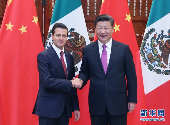 習近平強調,中墨雙方要保持密切高層交往,推動各層級各領域交流,規劃好未來5年中墨合作路線圖。要充分利用互補優勢,把握中國“十三五”規劃、創新驅動發展戰略同墨西哥結構性改革的契合點,促進產業投資、基礎設施建設、特區建設、金融、電信、新能源、地球空間信息、納米技術等領域務實合作。要深化人文交流,便利人員往來。要在重大國際和地區問題上保持密切溝通。希望墨方充分發揮地區影響力,繼續支持中拉關系發展和中國-拉共體論壇建設。