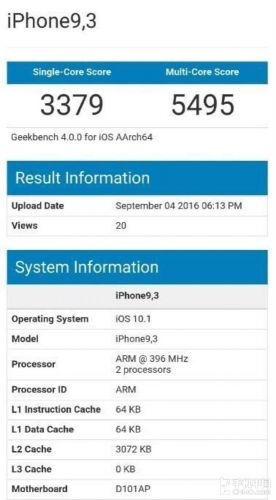 北京時間9月8日凌晨,蘋果新旗艦iPhone 7即將正式發布,全新的A10處理器、雙鏡頭等設計都讓人頗為期待。如今Geekbench給出了iPhone 7的跑分成績,單核3379,多喝5495,相比A9有著較大提升。