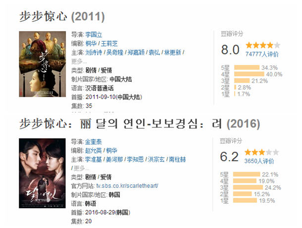 中韓《步步驚心》評分對比
