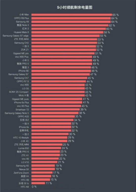 而在續航能力上,除了新發布的iPhone7/7 Plus暫時無法評測,剩下的三款手機,根據ZEALER的評測數據,三星Note7排第一(和Galaxy S7 Edge相差無幾),小米5次之,華為P9墊底。