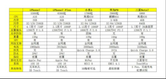 小編為大家對比一下iPhone7、小米5、華為P9以及三星Note7。