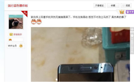 9月17日凌晨,中國網友“吉娃娃你”在百度note7貼吧發帖稱自己購買的中國版Note7出現了電池爆炸事故,這也是中國版Note7首次傳出爆炸事故。這使得在全球炒得沸沸揚揚的三星Note7“炸機門”事件在中國“炸了鍋”。