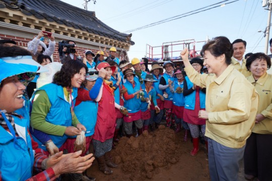 韓國總統樸槿惠于20日前往災區視察慰問。