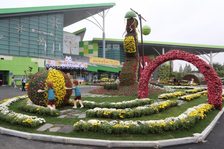 人民網9月28日訊 由韓國京畿道高陽市國際鮮花博覽會主辦的“高陽秋季鮮花慶典”28日在湖水公園隆重開幕。三個鮮花展覽區分別為“秋季花香苑”,“秋景休息苑”和“與花共舞苑”,坐落于湖水公園內的高陽鮮花展覽館和各廣場中。游客們可同時欣賞到菊花、向日葵、大波斯菊等100余種鮮花在秋日中爭奇斗艷。
