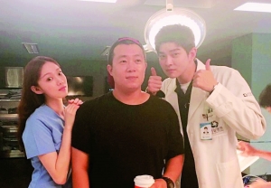 今年的SBS電視臺一部爆款韓劇《Doctors》就用花樣的方式來回饋觀眾的喜愛。早前李圣經在個人的社交網絡上曬圖,曝光了導演吳昌煥和劇中演員尹均相的合照,她寫道:“我們的吳導演,在《Doctors》收視率破20%時,履行了剃發的承諾?!睋?,剃發的過程,劇組的工作人員都熱情參與了,他們使用了劇中場景——手術室里的道具,并讓吳導演躺上了手術臺。不少觀眾笑稱,這一幕比劇中的故事還要驚心動魄啊。