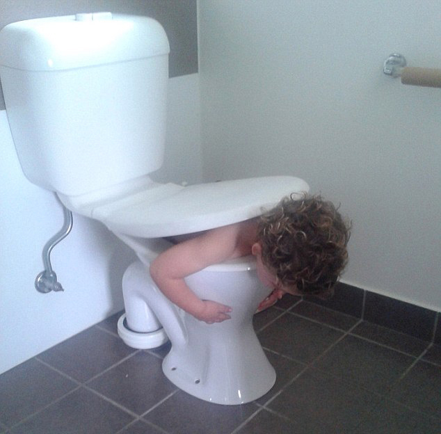 沒有人能猜到為什么一個咿呀的孩童要爬到馬桶里,但當馬桶蓋扣下來將他困在馬桶中或許讓他不太高興。