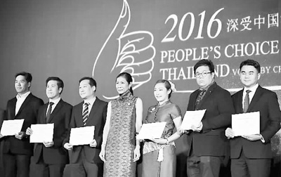 泰國國家旅游局此前公布2016年度“最受中國游客歡迎獎”評選結果,希望評選能促進泰國旅游業質量不斷提高,吸引更多中國游客。圖為頒獎典禮上,泰官員為獲獎機構代表頒發獲獎證書。新華社記者 李芒茫攝