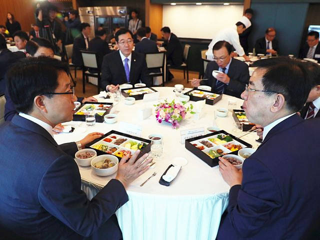 資料:9月27日,仁川國際機場負責人陪同韓國國會審計組成員吃盒飯套餐,套餐價格為22美元。(圖片來源:新華/法新)