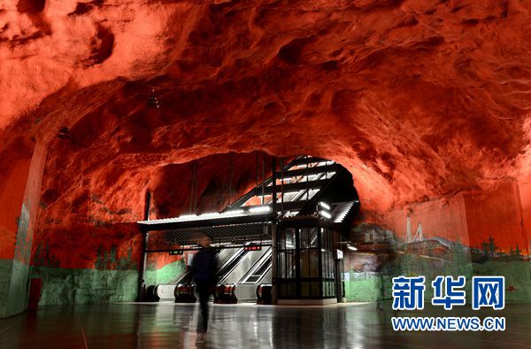 對于瑞典人來說,天然的巖石就是他們最好的建筑材料。瑞典人利用這些凹凸不平的巖石,雕刻出了富有現代感的立體作品,栩栩如生,令人大飽眼福。月臺和鐵道也是從自然巖石中鑿出,建筑設計師用各種顏色的彩繪畫出了生動的樹葉枝杈,再用現代技術制造出獨特的照明效果,令乘客仿佛身處原始洞穴之中。