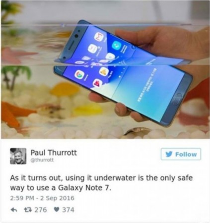 “我發現,在水里才是使用Note7的唯一安全方式?!?/p>